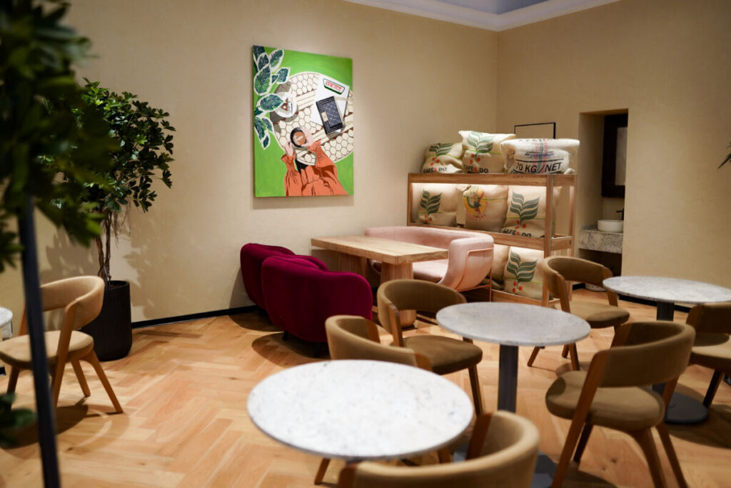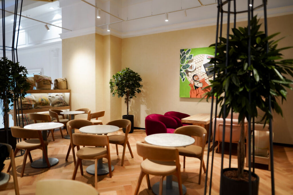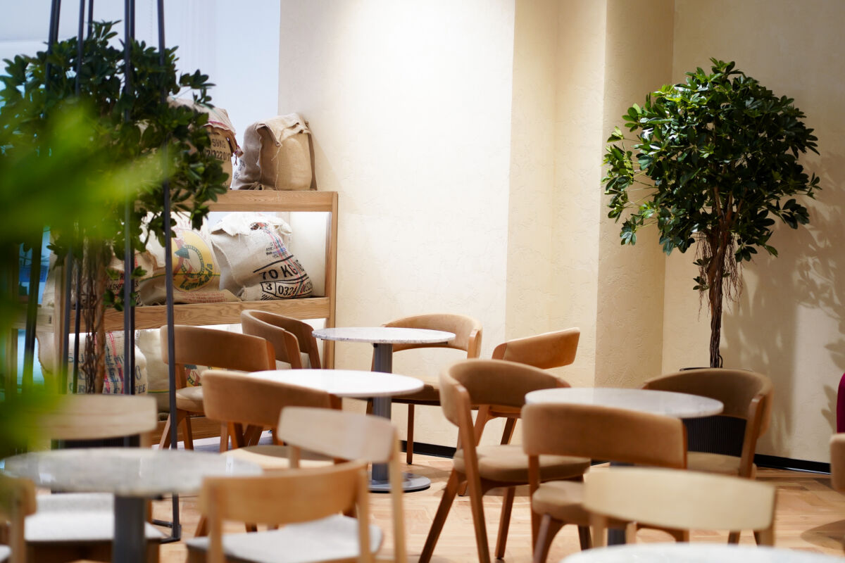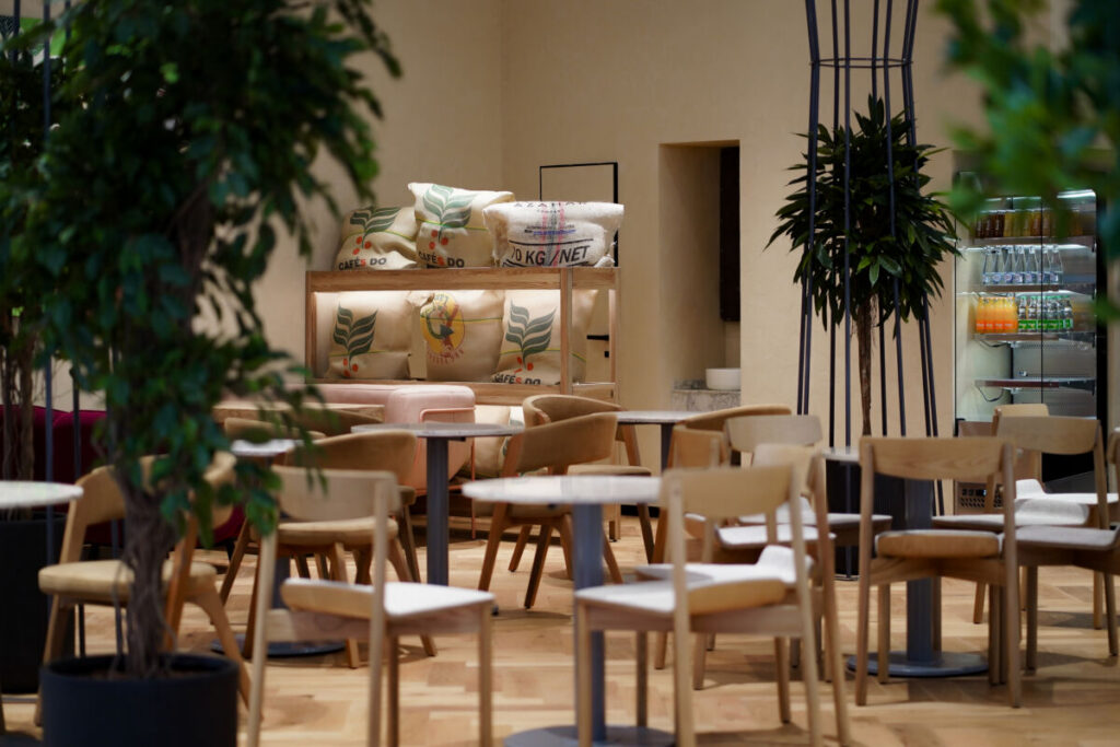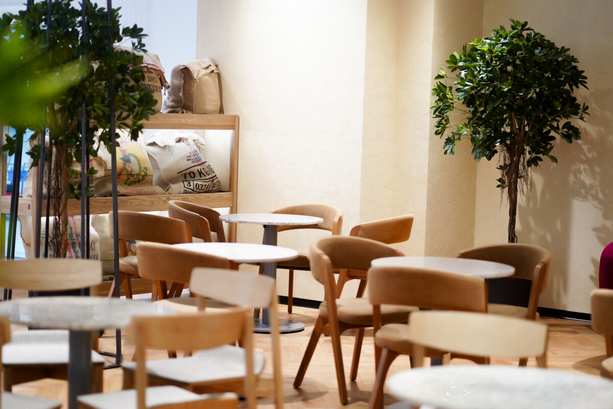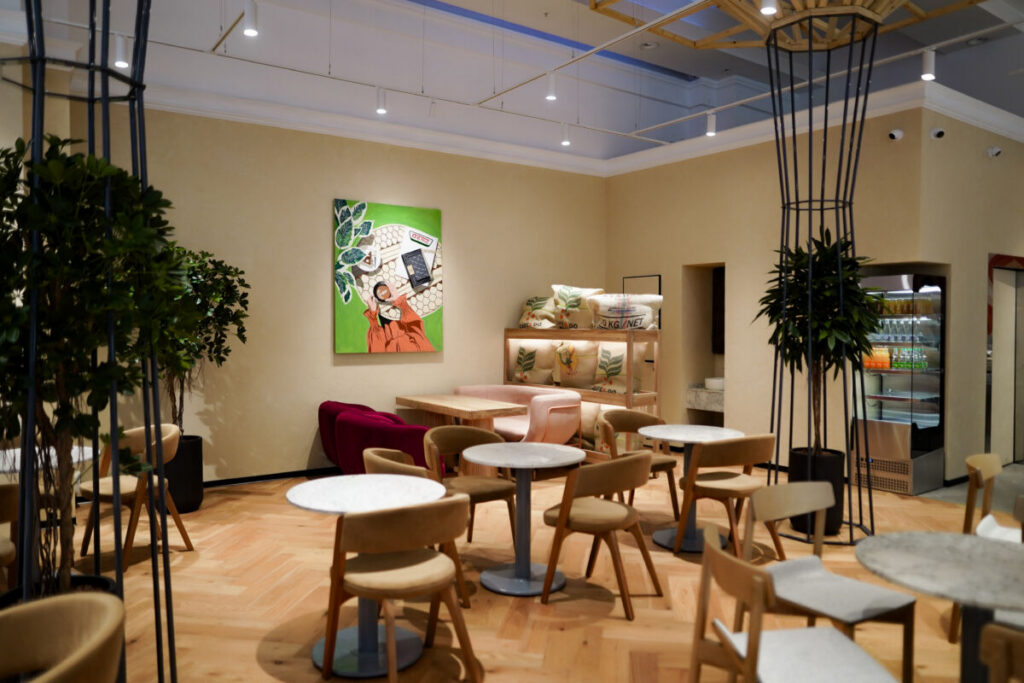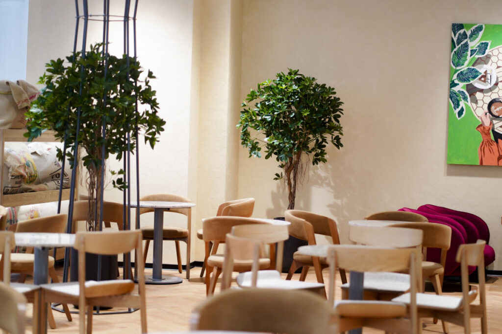 Интерьер заведения выполнен в теплых тонах натурального дерева и дополнен живой зеленью. Такая эстетичная обстановка позволяет гостям мгновенно переключиться от суеты — на волну спокойствия.