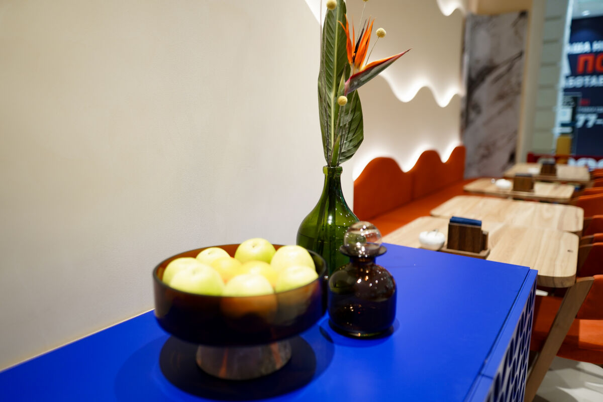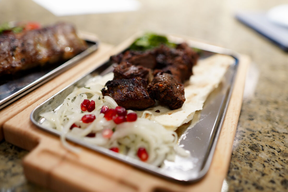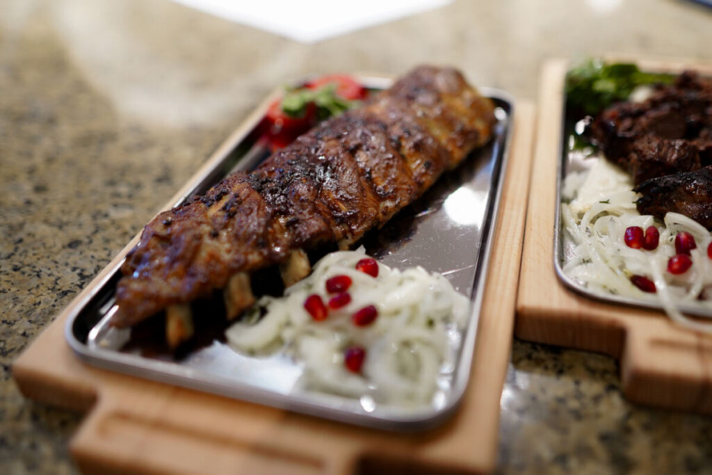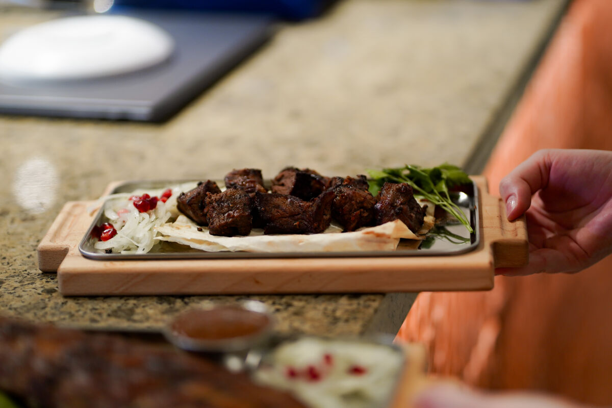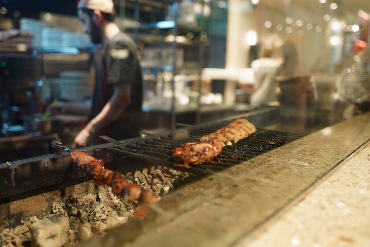 Кулинарный акцент сделан на блюда, приготовленные на открытом огне: в ресторане установлен внушительный трехметровый мангал.
